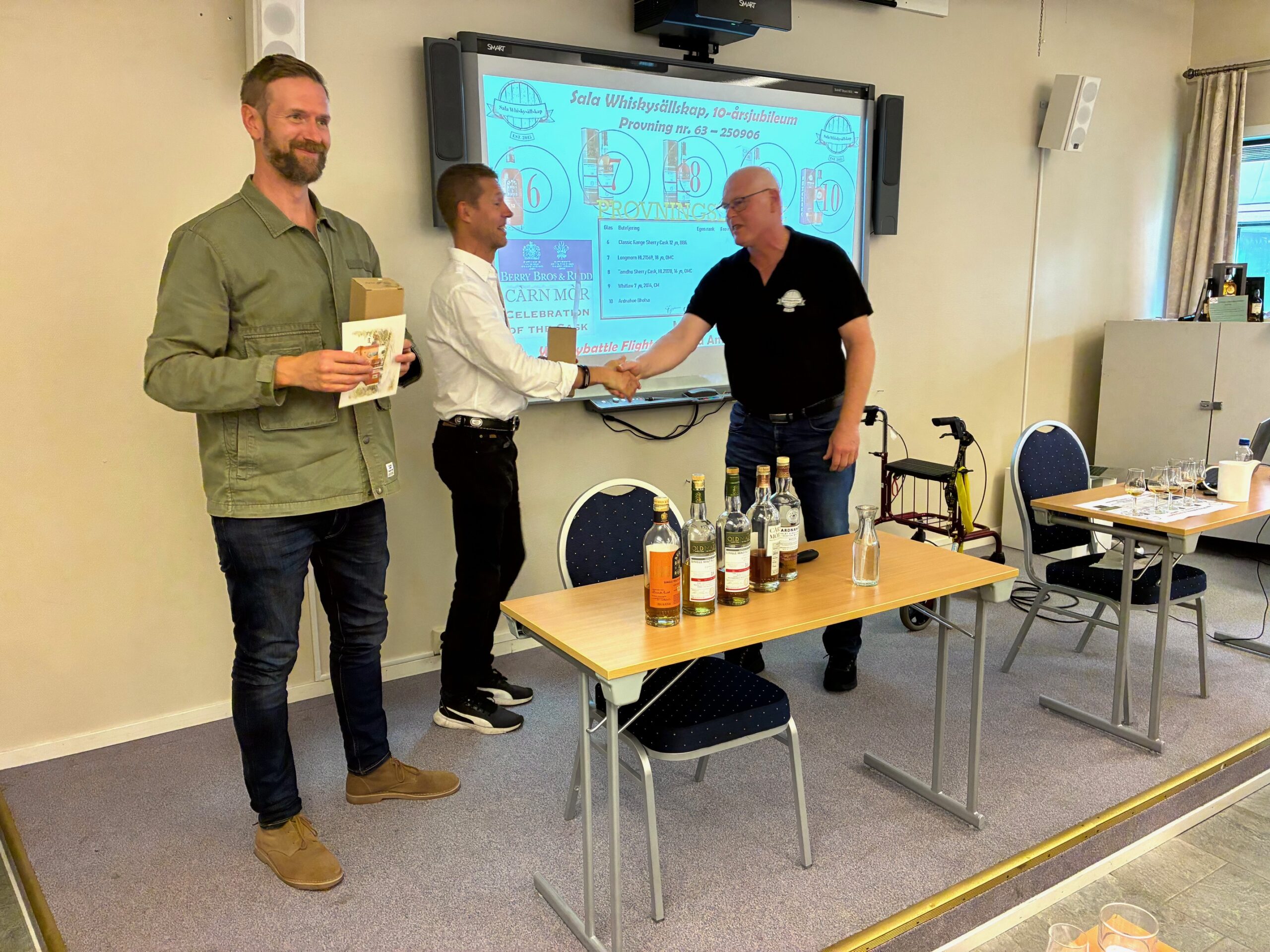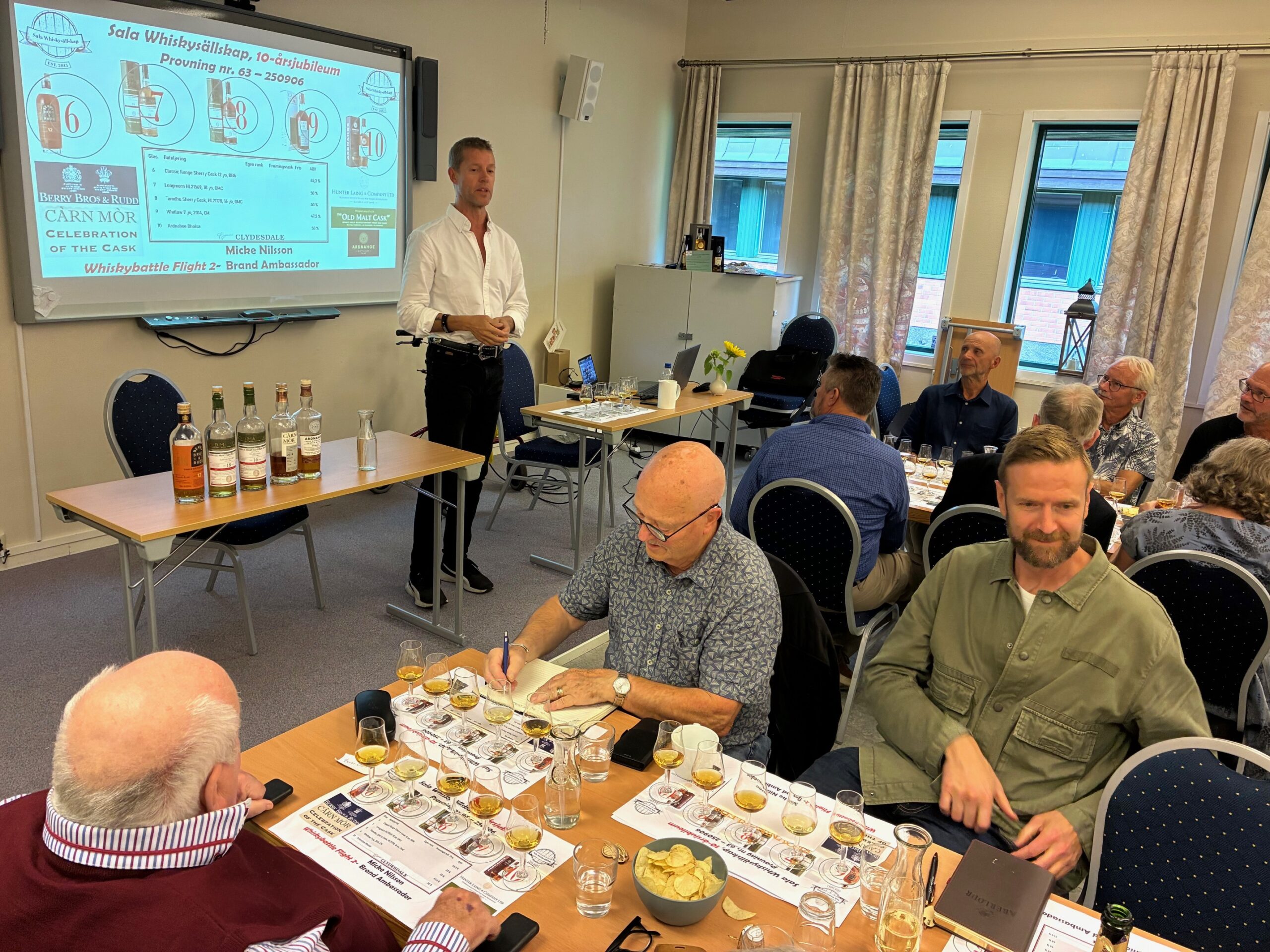 Vi höll till i Odd Fellows lokal vid Kontor 75 (Teknikhuset, Sala) och eftermiddagen och kvällen innehöll förutom middag med eget jubileumsöl, tipspromenad och många glada skratt även jubileumsprovningen Provning nr 63, där två av Sveriges främsta provningsledare Olof Noréus och Micke Nilsson höll en form av ”whiskybattle”.